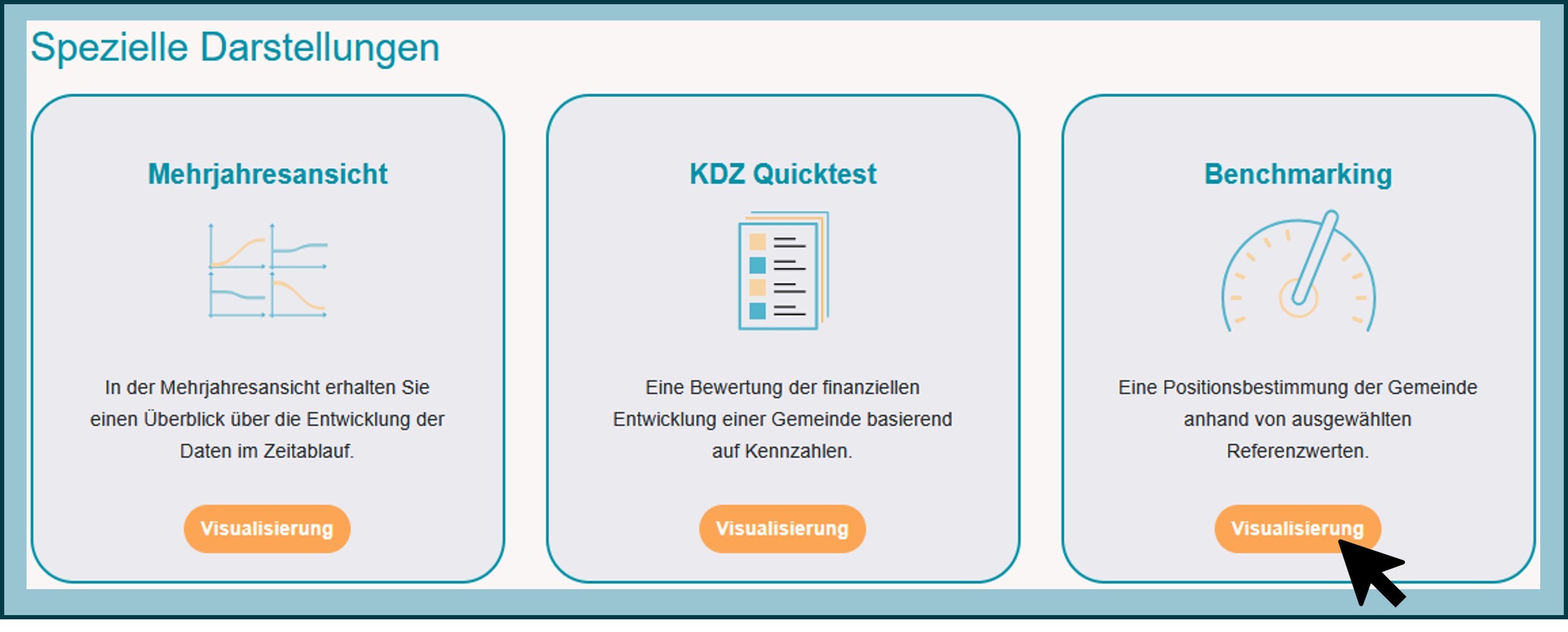 Das Benchmarking erfolgt anonym, d.h. es ist für die Anwenderin bzw. den Anwender nicht ersichtlich, von welcher Gemeinde die Referenzwerte stammen.