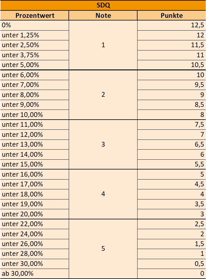Das Bewertungsschema für die Schuldendienstquote sieht folgendermaßen aus: